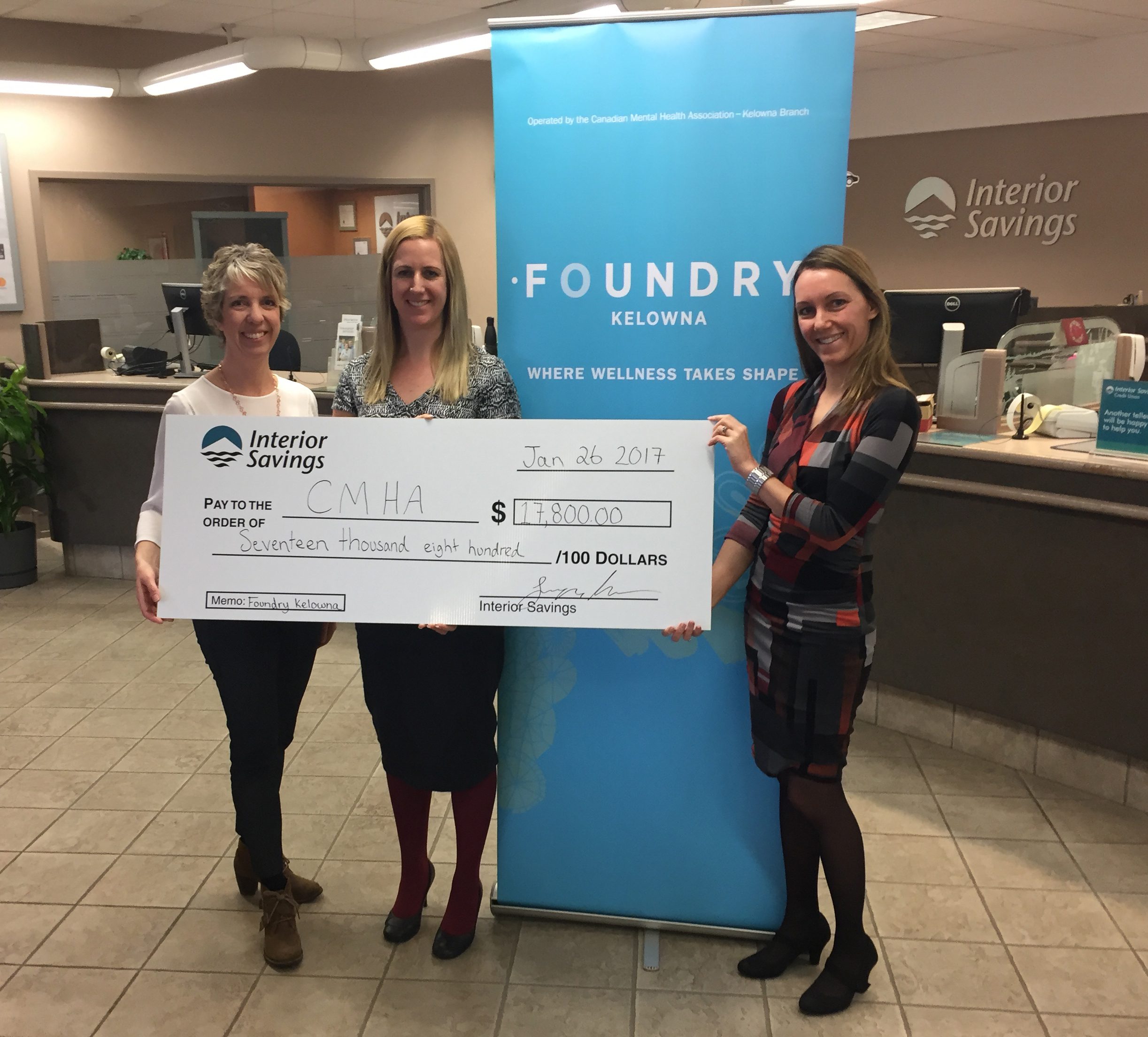 Pictured (l to r): Shari Slattery, CMHA Kelowna, Sonya Barker, Interior Savings, Corinne Johnson, Interior Savings